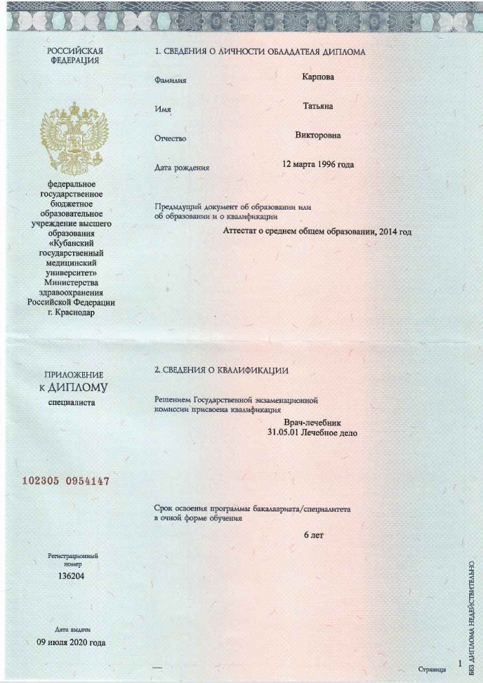Татьяна Карпова - Психиатр-нарколог медицинской клиники «Гармония» {city_p}